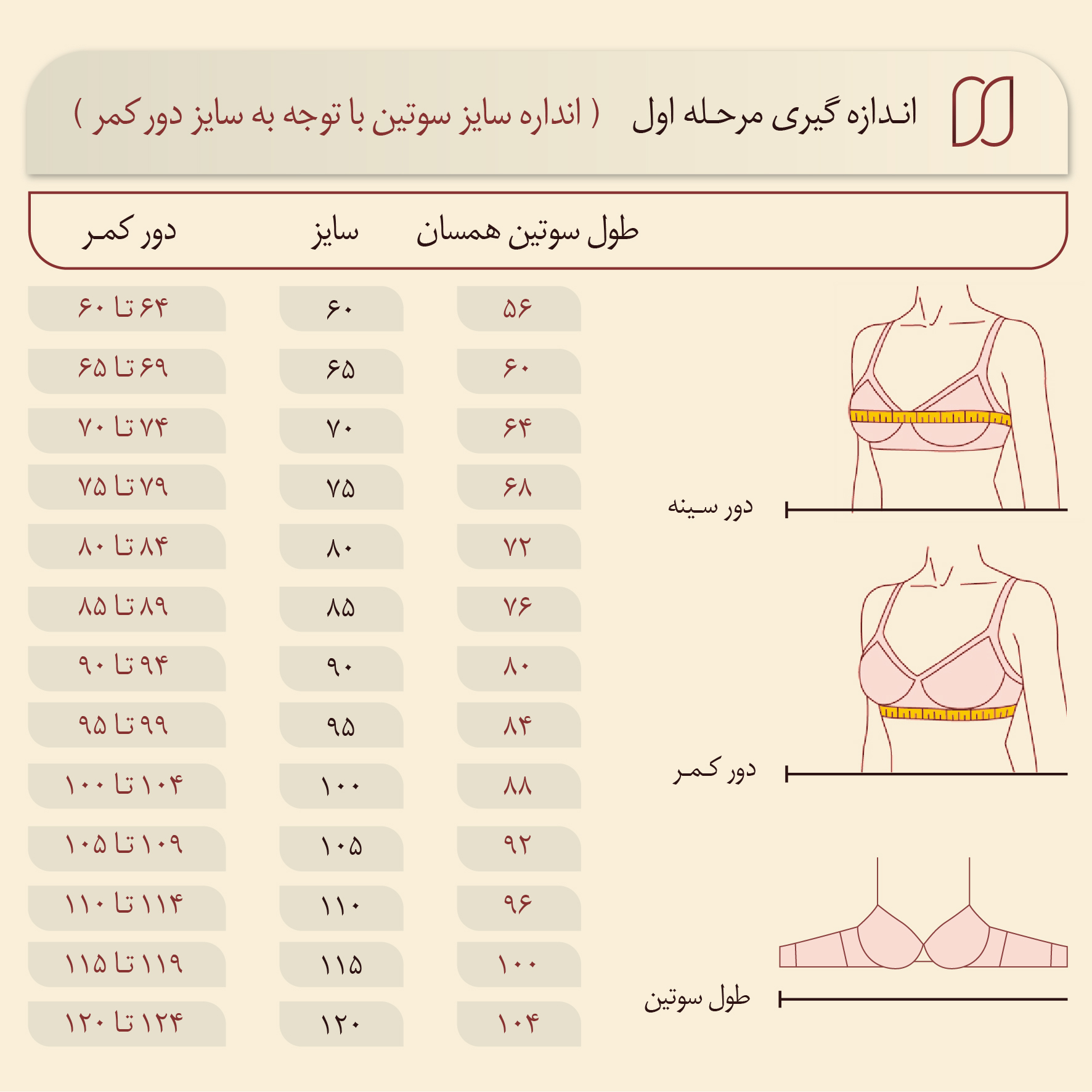 در انتخاب سایز سوتین با استفاده از جدول به طول دور زیر سینه دقت نمایید.