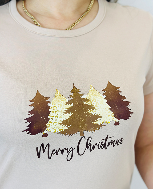 تیشرت زنانه سوپر پنبه طرح درخت کاج